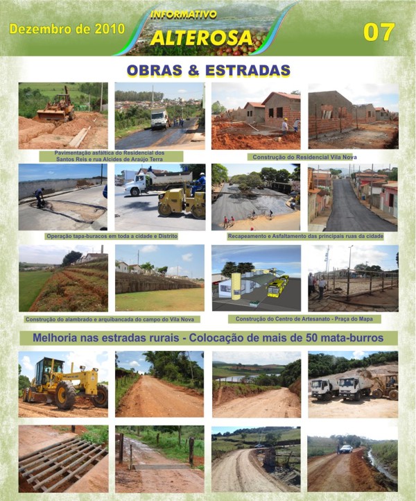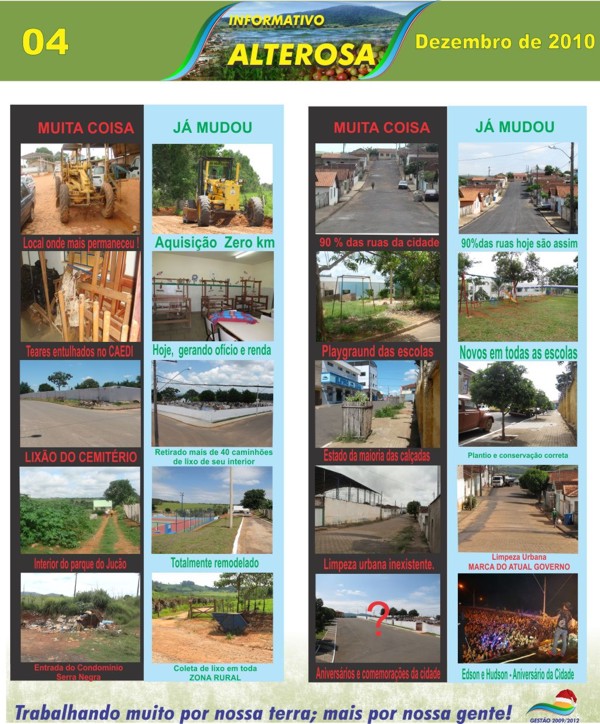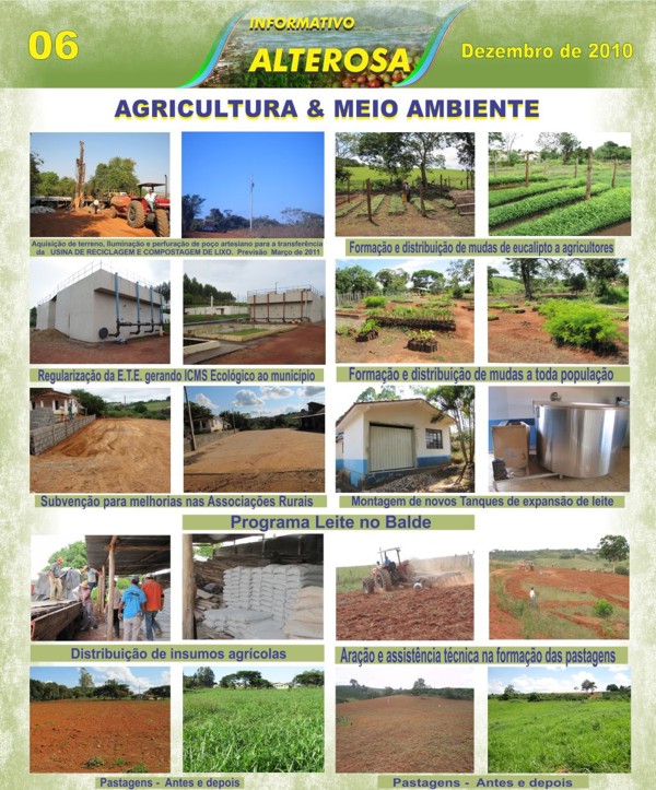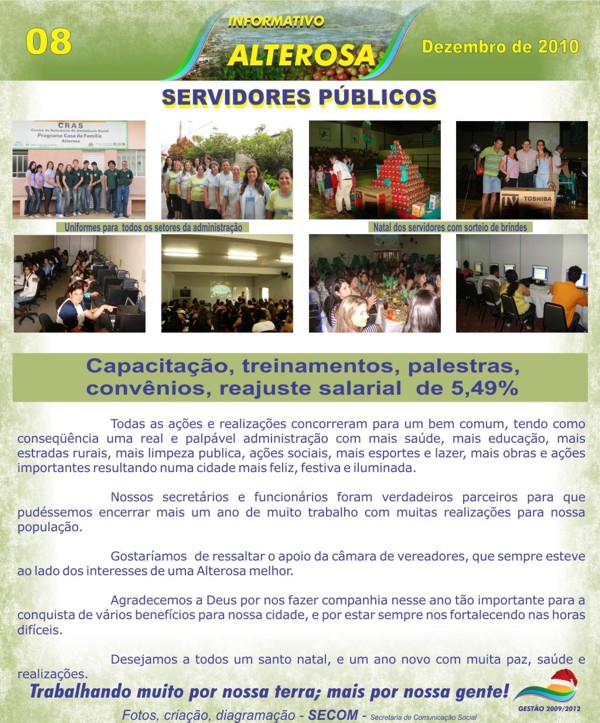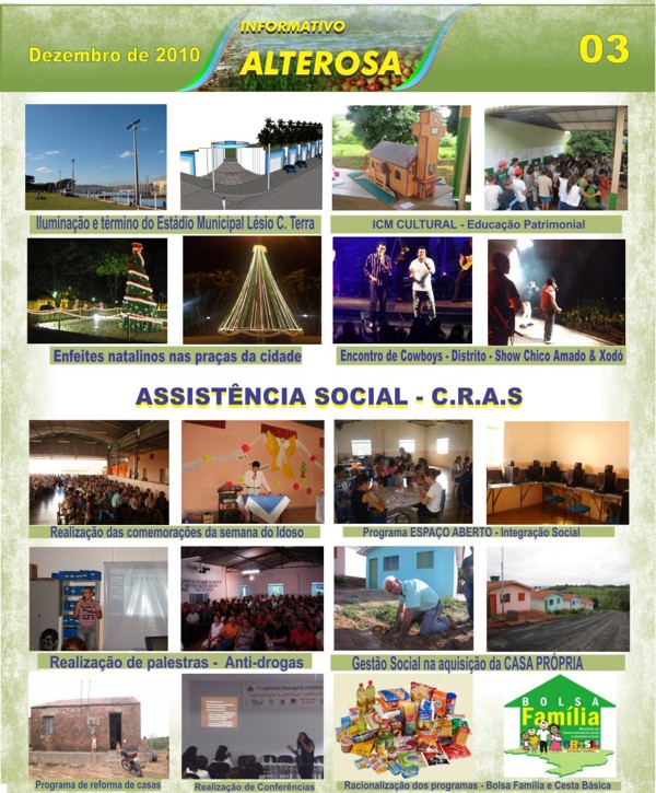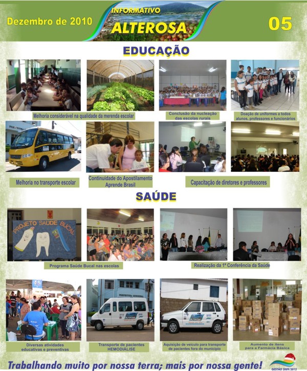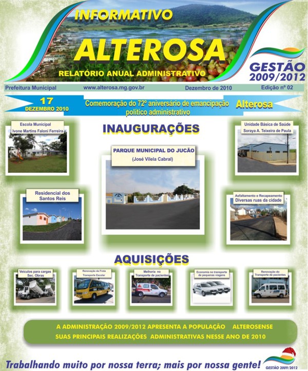 A administração 2009/2012 distribuiu na quinta feira, dia 16/12/2010, a toda população de alterosa, o seu Informativo Administrativo do ano de 2010.