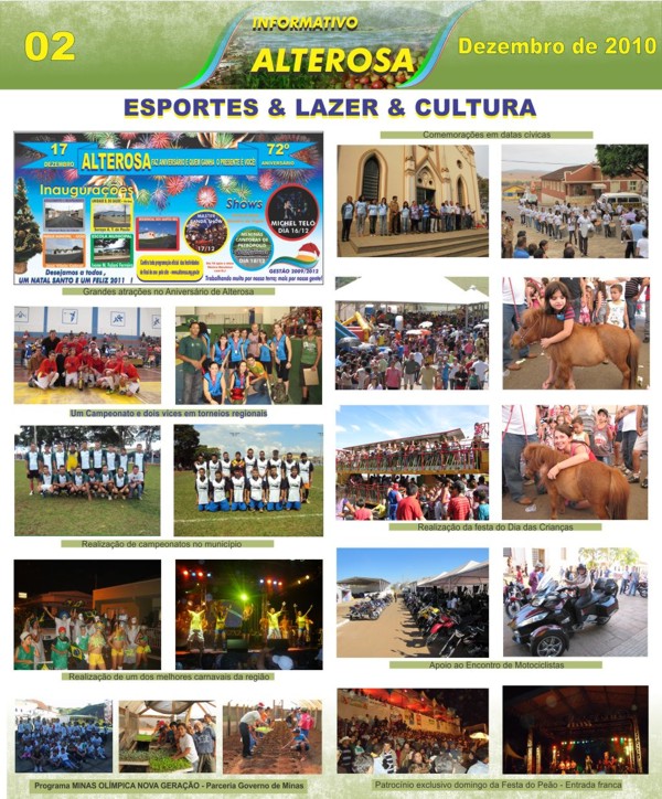 A elaboração, diagramação, fotos e arte, foram feitos pela Secretaria de Comunicação Social e está à disposição de todos os interessados na Prefeitura de Alterosa ou leiam a edição virtual clicando aqui.